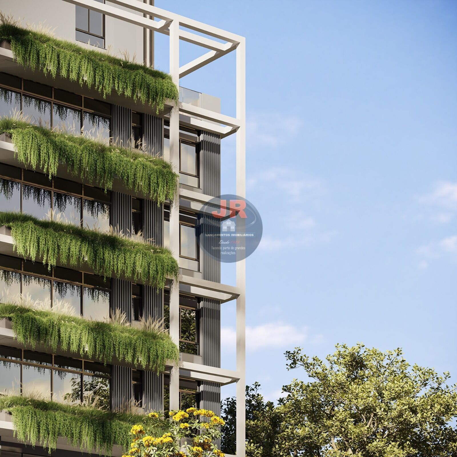 O projeto também se destaca em segurança e sustentabilidade, com recursos como reconhecimento facial, eclusa de pedestres e veículos, central de lockers, Wi-Fi e som ambiente nas áreas comuns, mercado 24h no condomínio, garagem com ponto para carro elétrico e reutilização da água da chuva.